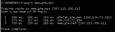 This command is used to trace the route to the destination server aka how many hops the info makes